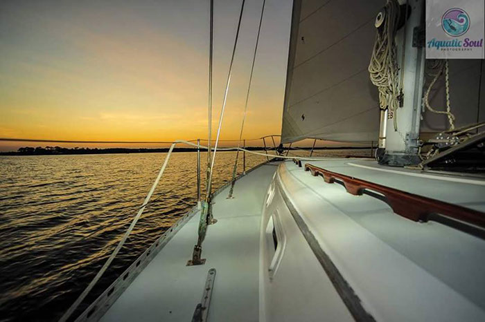 Sunset Sailing with Back Bay Sailing Adventures is an unforgettable true sailing experience. We only motor while leaving and returning to port. The sails are hoisted up  and we sail whichever way the wind takes us.  Relax kick back and enjoy the sounds of the wind and waves as we glide across the water. We sail the coastal water ways of Gulf Shores, Orange Beach and Perdido Key. Sunset Sailing in Orange Beach and Gulf Shores is becoming one of the most popular things to do while on vacation.